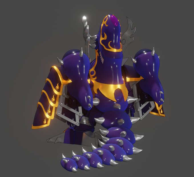 鉄斗羅頑駄無80%。肩の模様修正完了。肩のフィンパーツは可動して超将軍時のバックパックとの干渉を避ける仕様。フィンを動かした画像の左が牙忍、右が超将軍。