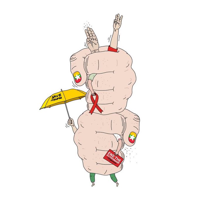 #WhatIsHappeningInMyanmar #illustration #poster #SaveMyanmar @RapporteurUn @freya_cole #RejectMilitaryCoup