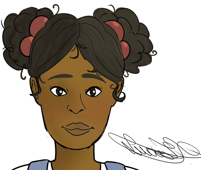 headshot for 18! I love drawing her hair, it's a fun shape to draw.