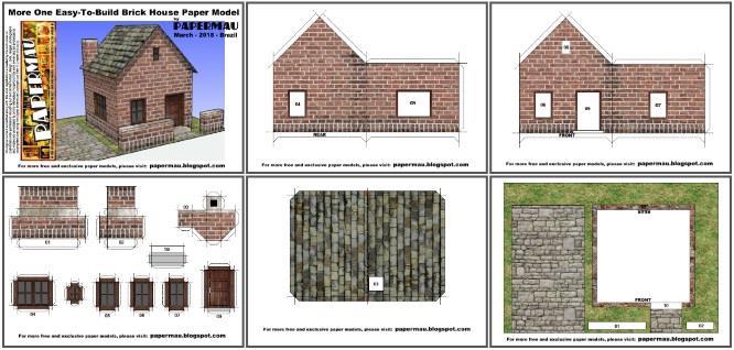 More One Easy-To-Build Brick House Paper Model - by Papermau - Download Now!