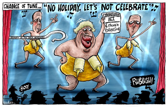 My @IndyVoices @Independent cartoon for tomorrow. Suddenly it's all got rather gloomy. #lockdown #CoronavirusAct #covid #BorisJohnsonOut #WABDOD #LadyShed
