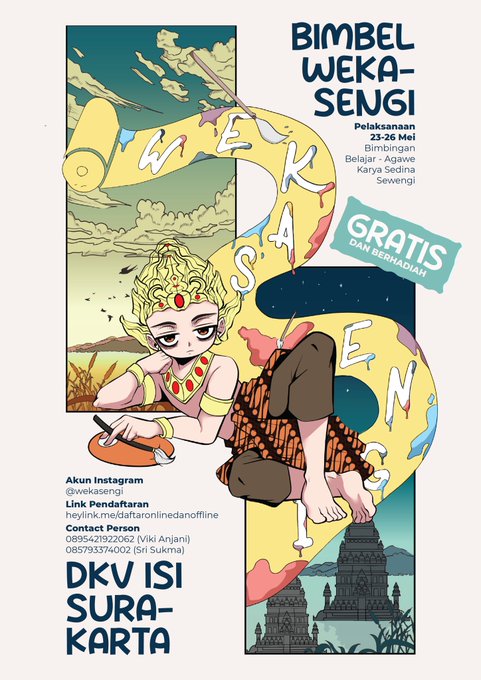 sch! halooo, aku ijin share yaa kegiatan bimbel dkv online dan offline, kalo tertarik boleh cek ig @/.wekasengi, di sana ada timeline acaranya dan link di bionya. sama kalo mau share juga boleh bgt siapa tau ada temennya yg lain yg tertarik ikutan. thank youu 🙇♀️