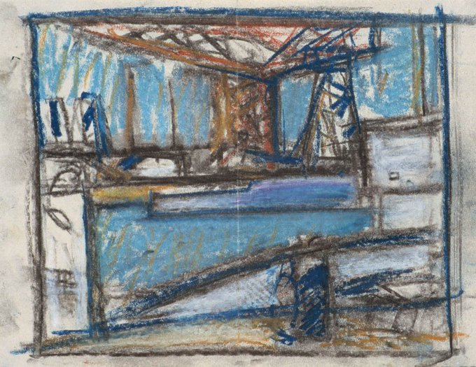 Dockyard III - watercolour and gauche @ https://t.co/l9SYPtp0l8 #art #paintings #watercolour #gauche #film #filmnoir