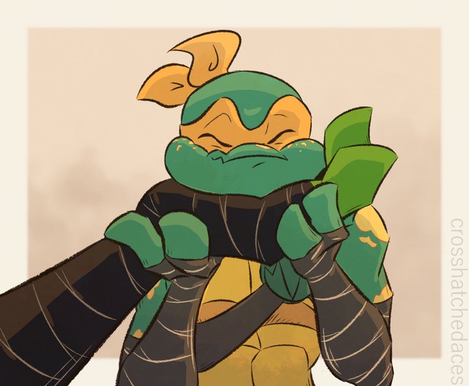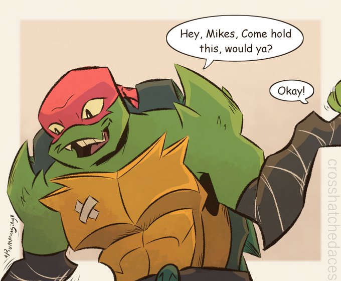 He didn't quite get the memo, but he's doing his best! #rottmnt #rottmntfanart #tmnt #rottmntraph #rottmntmikey #sunsetduo