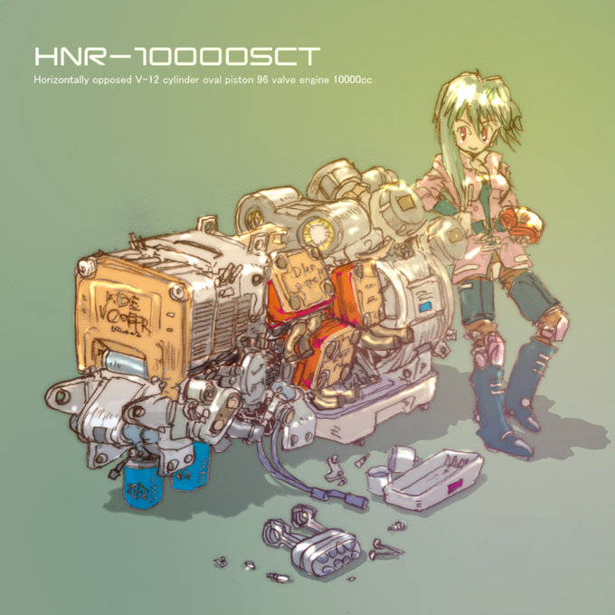 『MSTR-10000RTC』 6輪だけどリーンしてコーナリングする。独立懸架の6WS(前輪は電動)で悪路走行も可能な限りなくバイク的乗り物。 『HNR-10000SCT』 6輪バイクMSTR-10000RTCのパワーユニット。10000cc! #rkgk #original #archives #バイク #メカ #6輪バイク #exp7d