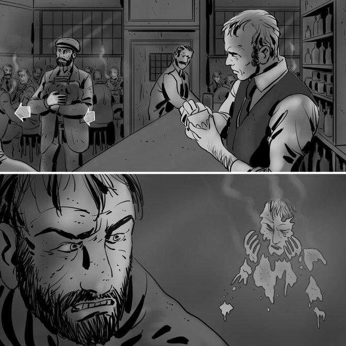 Shooting kicks off tomorrow on our new feature film, Fear the Invisible Man (@FearInvisible). Here are some of the amazing storyboards for our tavern scene drawn by the fabulously talented @adl101. #invisibleman #hgwells #filmproduction #directing #bristol #vfx