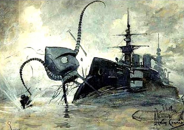 🛸In the latter 19th century this world was being watched closely by intelligences greater than man's, yet as mortal; that as men busied themselves they were studied, as a man with a microscope might scrutinise the transient creatures in a drop of water🎨Vincent di Fate🛸#HGWells