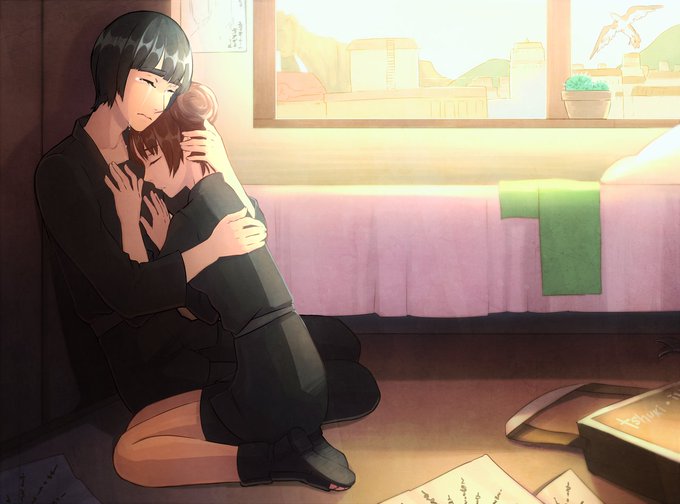 Rock Lee ロック・リー and TenTen テンテン visit Neji's 日向ネジ bedroom after the funeral.