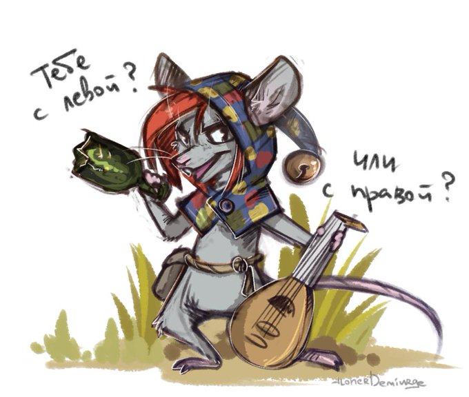 just whatched a MintMouse's stream records about the brave little mouse bard Tilo =:'3 very amused as in the beginning Mouse was offered to make a weapon from the bottle. I immediately imaged gangsta-mouse-bard~
