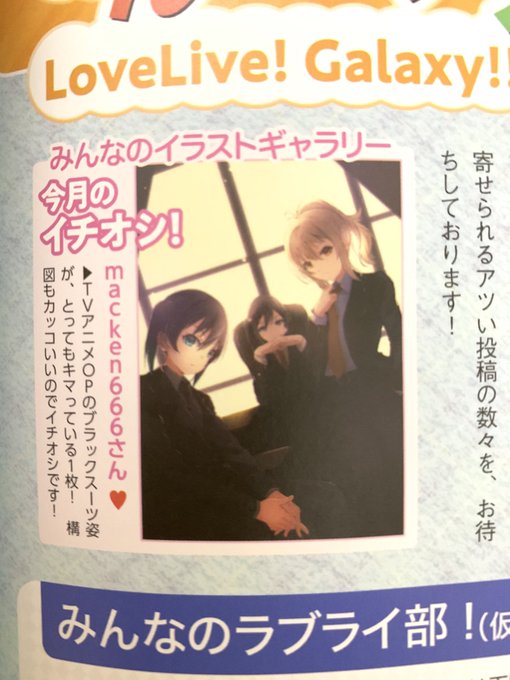本日発売のラブライブ!総合マガジン「LoveLive!Days Vol.015」みんなのラブライ部!コーナーで今月のイチオシ!に選んで頂きました〜(≧∇≦)