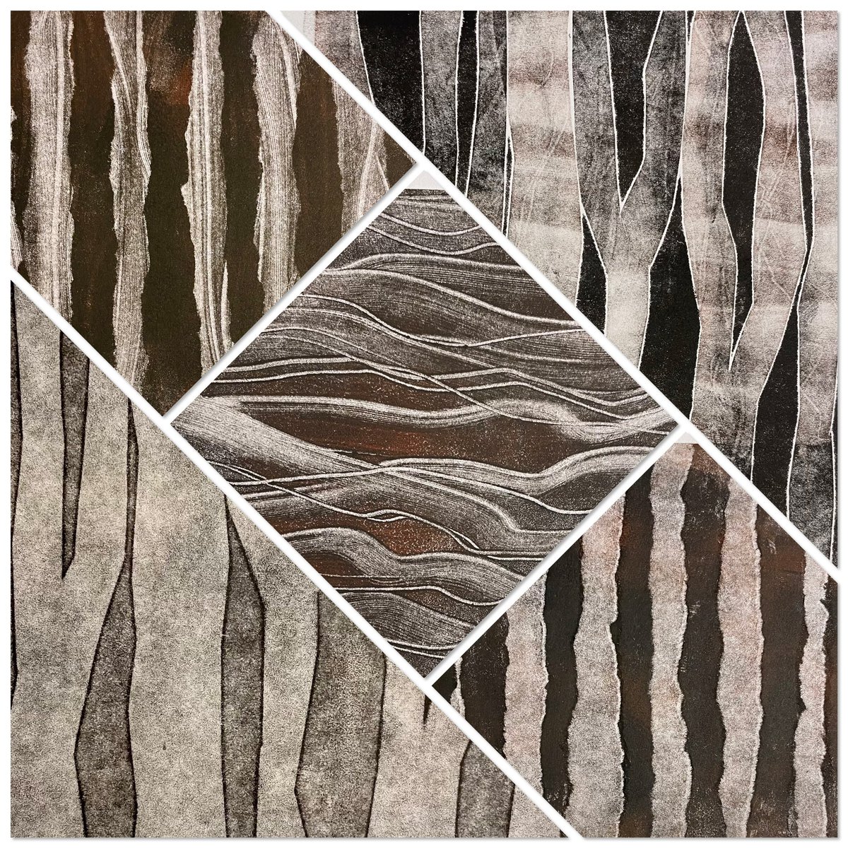 @GraniteElements After some intense detailed wood engraving it’s good to play with some bits of cut paper and printing ink, making monoprints #mycreativeweek #printmaking #lines