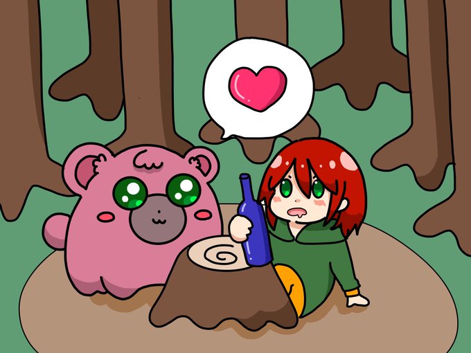 #Murrart #ぴぴこあーと むらちゃん@Murra_VV とぴぴこが森で出会った時のイラストを描きました💖むらちゃんはその時、何かお酒のようなものを飲んでいて、ぴぴこは一目惚れしてしまいました💖