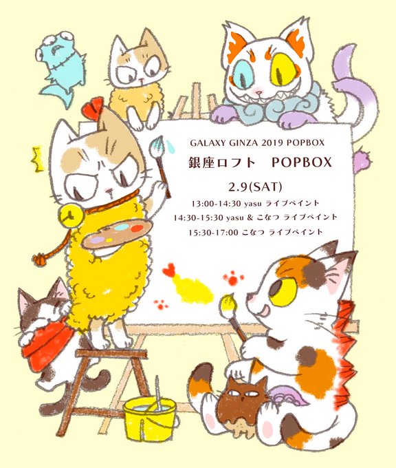 明日2/9、銀座ロフト6階 POPBOXにてライブペイントを行います。イラストレーターyasuさん @yasu_ebineko とのコラボペイントもいたします!