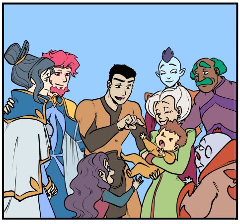 nació el protagonista y están todos contentos #PrincipeYu (dibujo por @jade_gl con mi guión/color) #wip #MakeComics #scifi #adventures