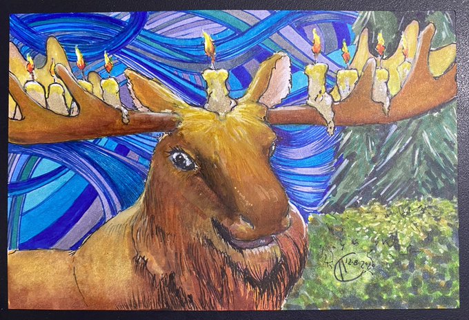 #art #markerart #quarantineart #postcardart #moose #hanukkahart