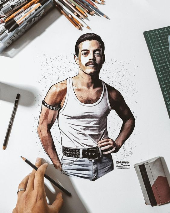 Suppose that he took all the funds from allergies) The first art of the series, which I hope to finish one day #FreddieMercury #Queen #RamiMalek #Cat