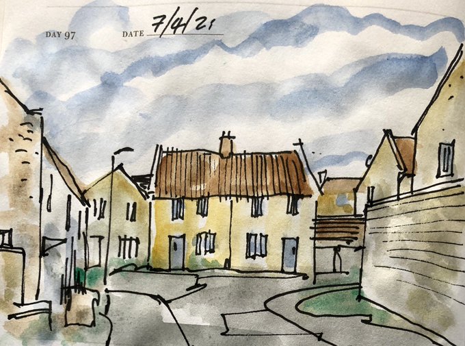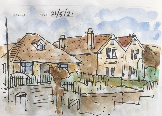 21/5/21 Houses on Englishcombe Lane, inkpen and watercolour sketch #onesketchaday #dailysketch #artist #architecture #bath #BathTogether #rapidsketch #sketchbook