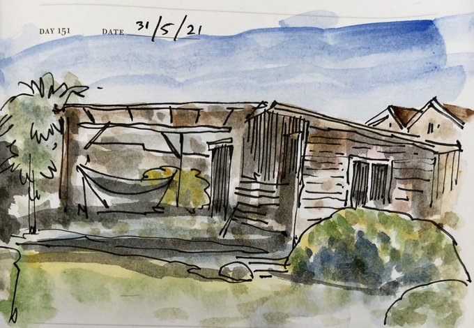 31/5/21 Our back garden on a glorious bank holiday Monday, inkpen and watercolour sketch #onesketchaday #dailysketch #artist #architecture #bath #BathTogether #rapidsketch #sketchbook