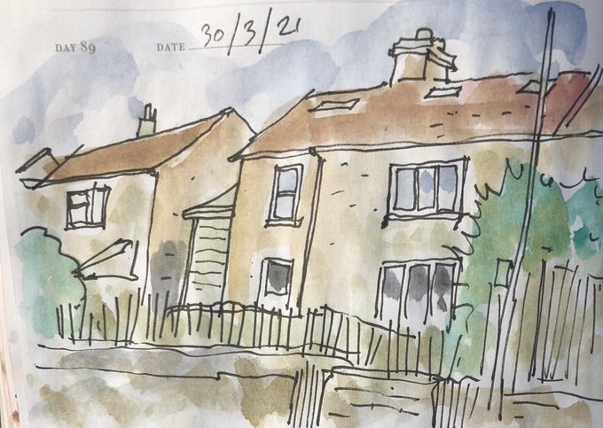 30/3/21 Houses on Englishcombe Lane, inkpen and watercolour sketch #onesketchaday #dailysketch #artist #architecture #bath #BathTogether #rapidsketch #sketchbook