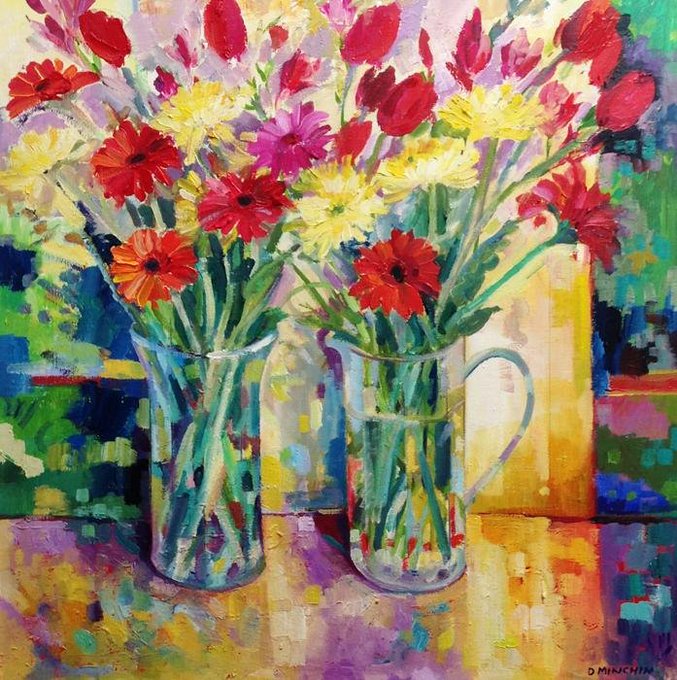 Double Bouquet of Early Summer Flowers – an Original Painting by Dennis Minchin (RBSA) available to purchase via the Own Art Scheme https://t.co/N9AOOTof2M #double #bouquet #flowers #stilllife #painting #oil #fineart #OwnArt @ownartscheme