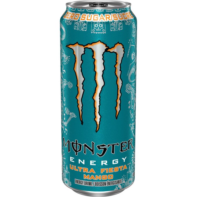Cyan Scyther is enjoying a tall can of Monster Zero Ultra Fiesta.