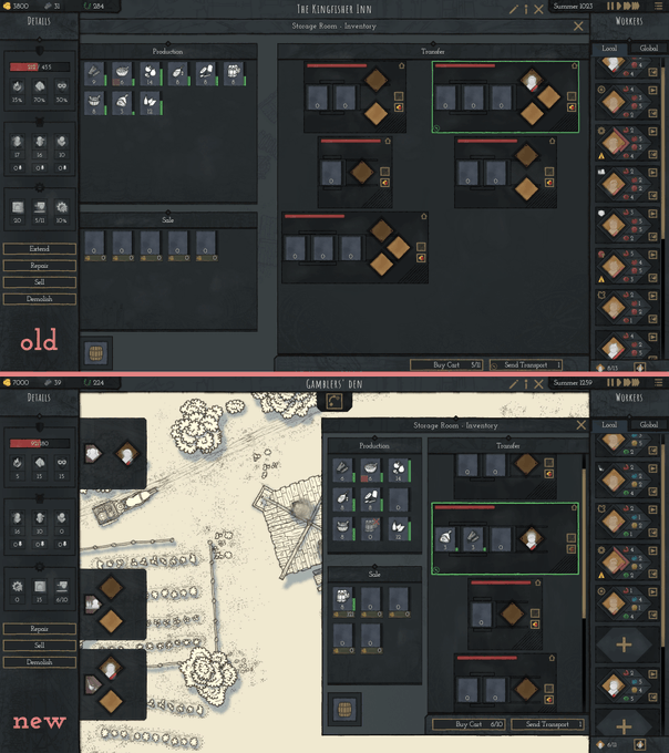 The new inventory sub-panel in the building UI compared to the old design.