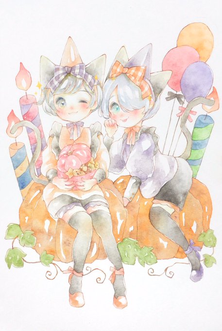 描きおろしました☺️🙌ねこみみおしょた師弟です💕