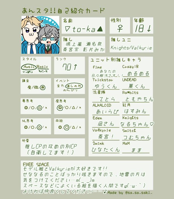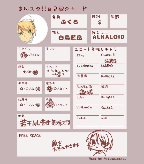 #あんスタ自己紹介カード