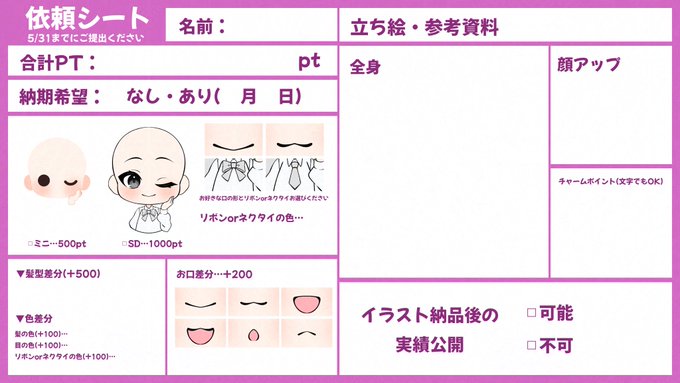当選した方は創作キャラに新しく洋服デザインや、キャラデザからでも大丈夫です!