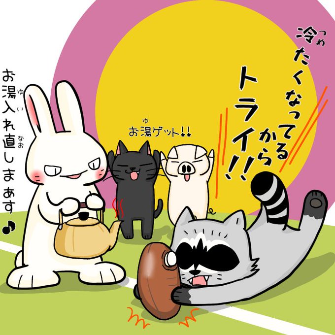 今日のシシシうさぎ4コマ漫画「ラクビー」本編とおまけイラストはこちら。 #おまけ付き4コマ漫画 #シシシうさぎ #ラグビー