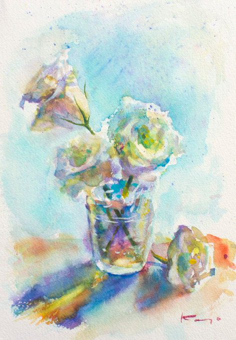 花言葉は色々あったけど、西洋の花言葉で「感謝」の意味を込めて描いた