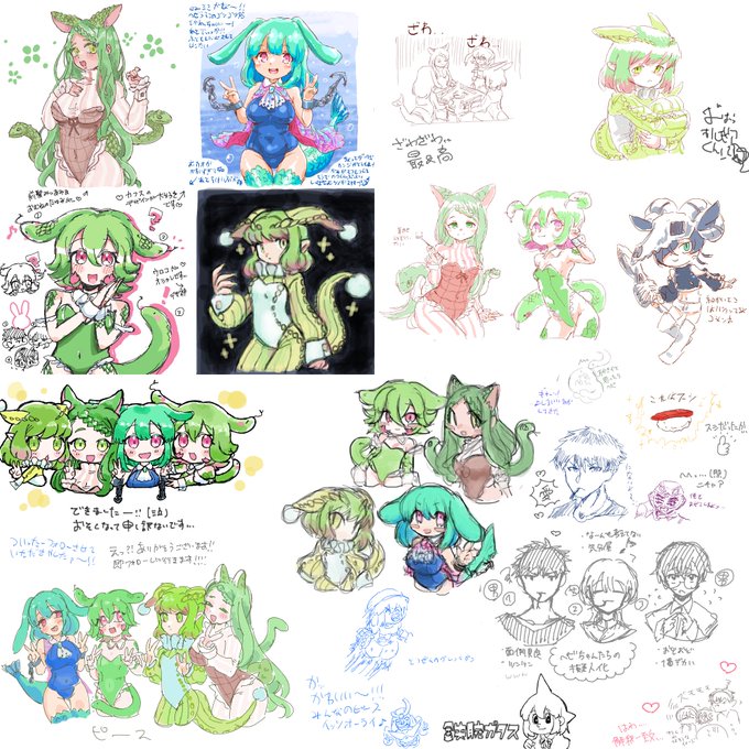 バニー絵チャお邪魔しておりました〜!1枚目の子はお題出し合って同じテーマで描くやつでデザインした子で3枚目は他の参加者の方々のデザインした子で2枚目は蒼ちゃん!4枚目は突如生まれた謎合作です!