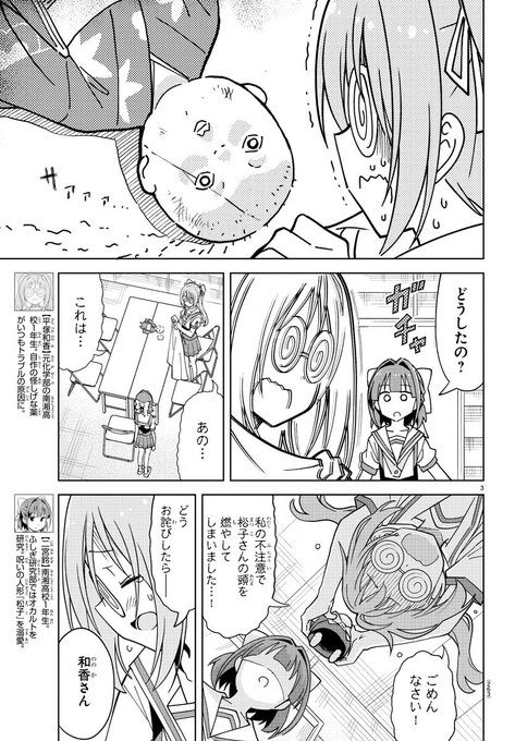 【あつまれ!ふしぎ研究部】今週のふし研は‼︎ 部室を占有している間に存分に実験をしようとする和香。しかし、誤って鈴が大切にしている曰く付きの日本人形・松子の髪を燃やしてしまい…!? 誠意とサービスで贈る最新話は、週チャン43号で!! 発売中の最新刊12巻とご一緒にこの祝日にどうぞ!!