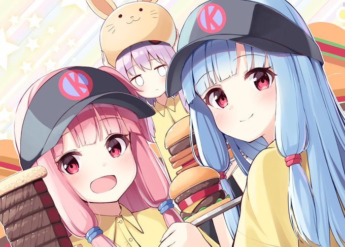 ボイスコネクトで頒布された、アジシオさん主催の「実況劇場支援イラスト合同」で「ことのはバーガー始めました」の支援イラストを、おみなえしさん(@ominaeshin)に描いて頂きました!