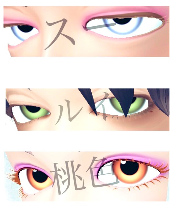 つり目好きがアホみたいに研究重ねて、ある程度のモーションに似合うバランスのいいつり目と、死んだ魚の目を作り上げました←