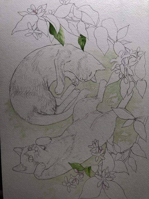 水彩画は40年ぶりだったので画材を買うところから始めたんですよ。#漫画家とねこ展