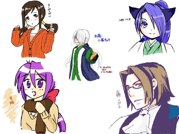 絵チャしておりました。絵茶ログです。一枚目はお題・秋、二枚目はお題交換、三枚目はキャラクター交換、四枚目はナースです。おつきあい下さった茶丸さん、conaさん、知芳さん、右左さんありがとうございました!
