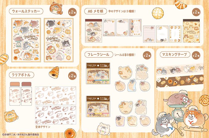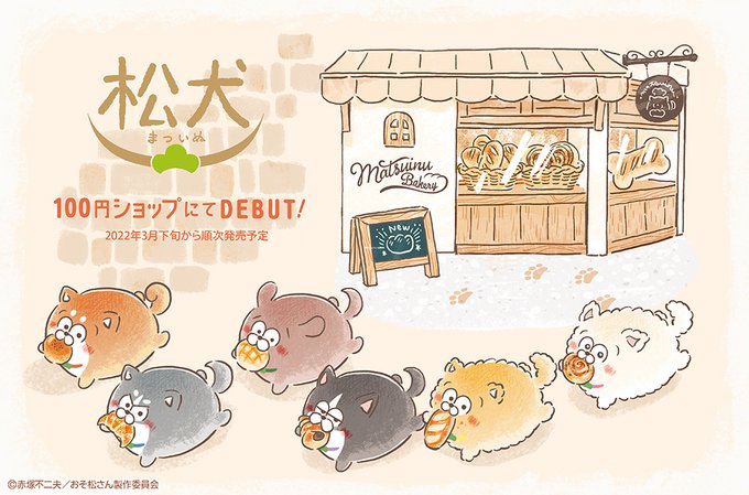 100円ショップにて松犬オリジナルグッズが発売!3月下旬から順次発売✨ほんわか優しいパンのイラストが目印です🍞👀