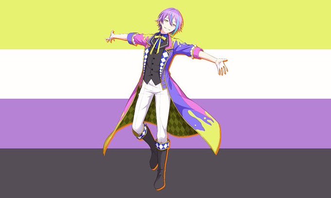 mlm flag colorpicked from aphelios official art for my pride month/league of legends thread, but i drew aph and sett on it for @iluvoreymuch cuz he asked me to💖
