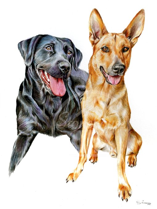 New #artcommission for Jack Arrowsmith of his dogs, created on A3 smooth cartridge paper using a blend of Caran D'ache Luminance Pencils and Faber Castell Polychromos Pencils.