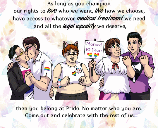 I want everyone in the LGBTQ+ community to know: you are valid, loved, and wonderful. Let's celebrate who we are!! I'll try to make some pride art this month -w-