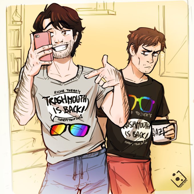 Day5: The new T-shirts from Richie's new show just arrived that morning and Richie had to try them on as soon as he opened the parcel. Eddie went to bed late and wants to enjoy his free Saturday. #reddie #reddieweek #reddieweek2020 #richietozier #eddiekaspbrak