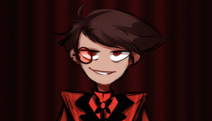 (My eyes was burning when i drew Alastor's fifty shades of red. It explanes that many artists draw him in lines only🤣)
