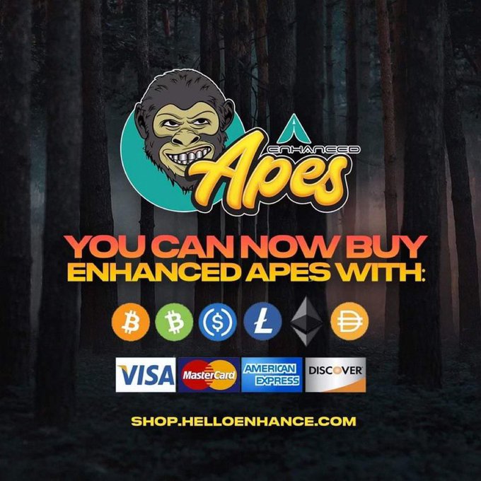 #EnhancedApes available with Credit/Debit Cards and now with #Coinbase Wallet. Check out the project on https://t.co/Ei5se0ilF3. Massive roadmap that will blow your mind backed by a team that gives their all! #EnhanceToken #Enhanc3