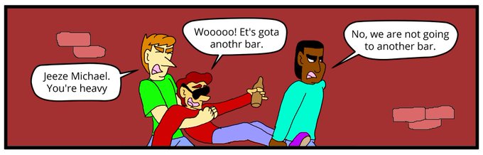 Looks liek Michael had a bit too much to drink in today's issue of Jackey and Max. #webcomics.
