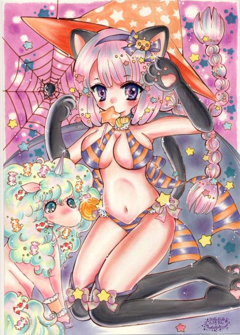 手描きのイラスト(=^・^=) 明日はハロウィン~~♪ #ハロウィンシーズン創作クラスタフォロー祭 #イラストと描いた人 #アナログで絵を描くのが好きな人たちの集い #コピック