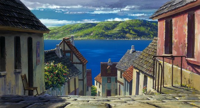 Backgrounds from Howl's Moving Castle ( ハウルの動く城, 2004, Ghibli Studio, AD Takeshige Yoji)