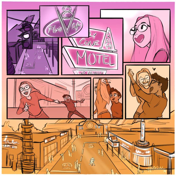 a comic spread of a sweet moment between me and my girlfriend in carsland! #queer #wlw #dailycomics #comic