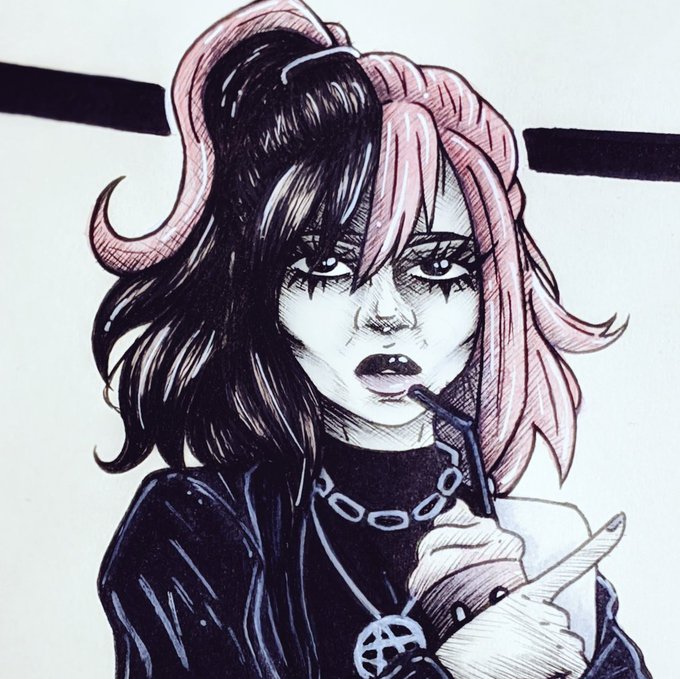 Done a #drawthisinyourstylechallenge for GiGi's Lab on Instagram. Check her out! 🖤 I feel this drawing has helped me take a step away from this art block I'm going through. #illustration #artist #sketchbook #sketch #artistssupportartists #drawing #inkdrawing #ink #goth #dtiys