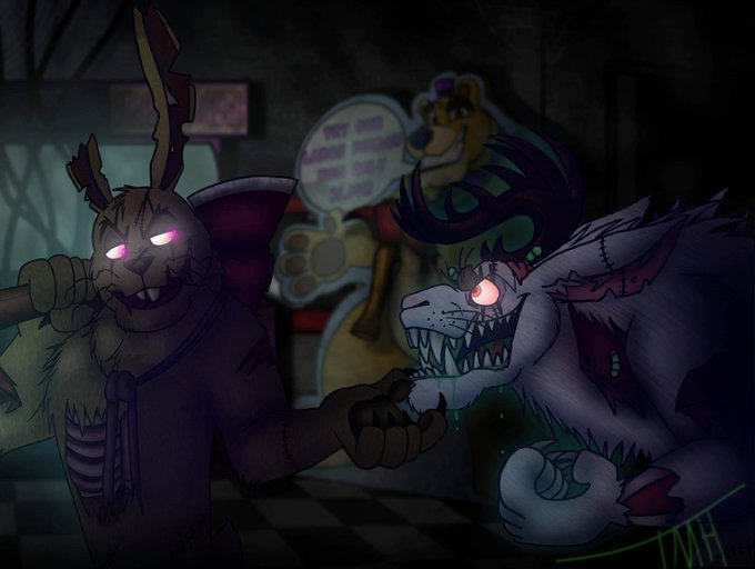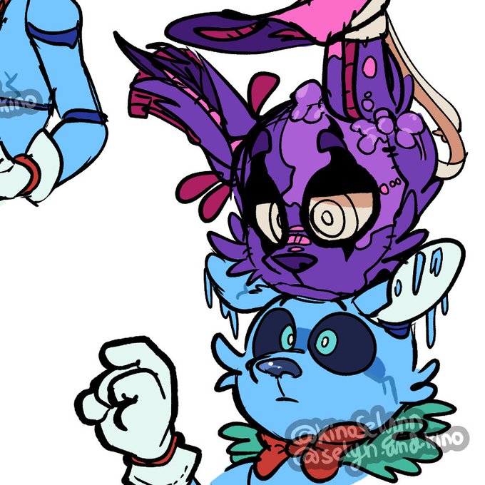 Big thank you to @//themaskedhunter for this absolutely incredible commission of springtrap and frostbite planning something sinister! I love it! 😭💜